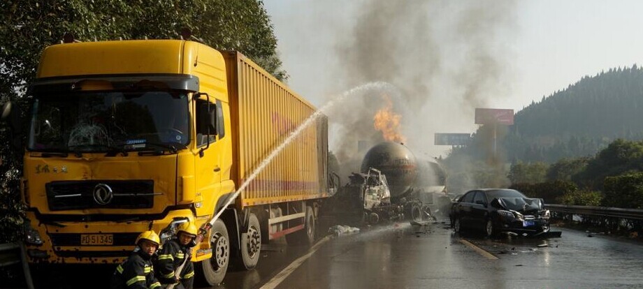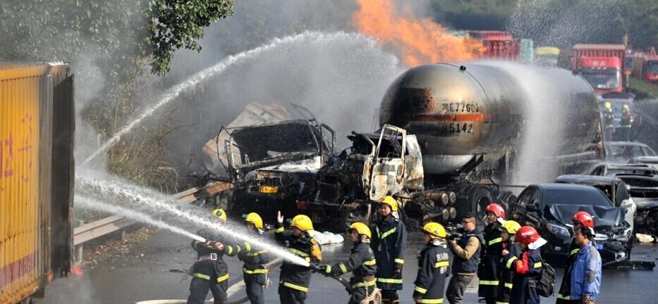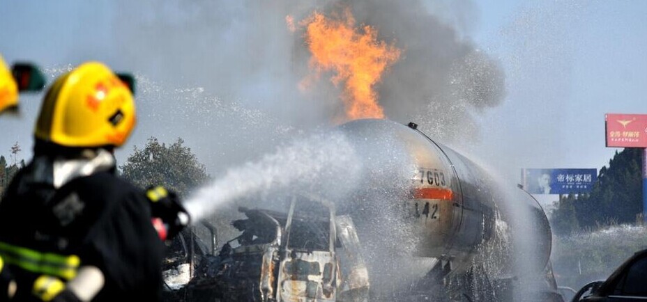 高速路液化气罐车追尾后爆燃 致6死多伤
