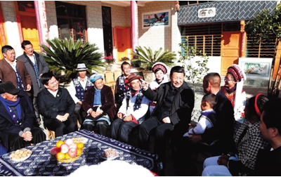 艳阳高照,天气晴朗。习近平和乡亲们在院子里拉起家常。习近平说:“我是第一次来大理,从小就知道苍山洱海,很向往。看到你们的生活,我颇为羡慕,舍不得离开。”他叮嘱大家:“云南有很好的生态环境,一定要珍惜,不能在我们手里受到破坏。”