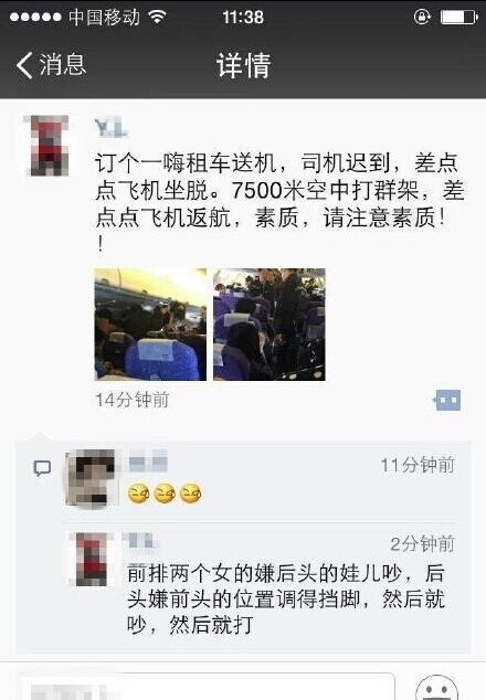 重庆一航班--乘客在机上大打出手